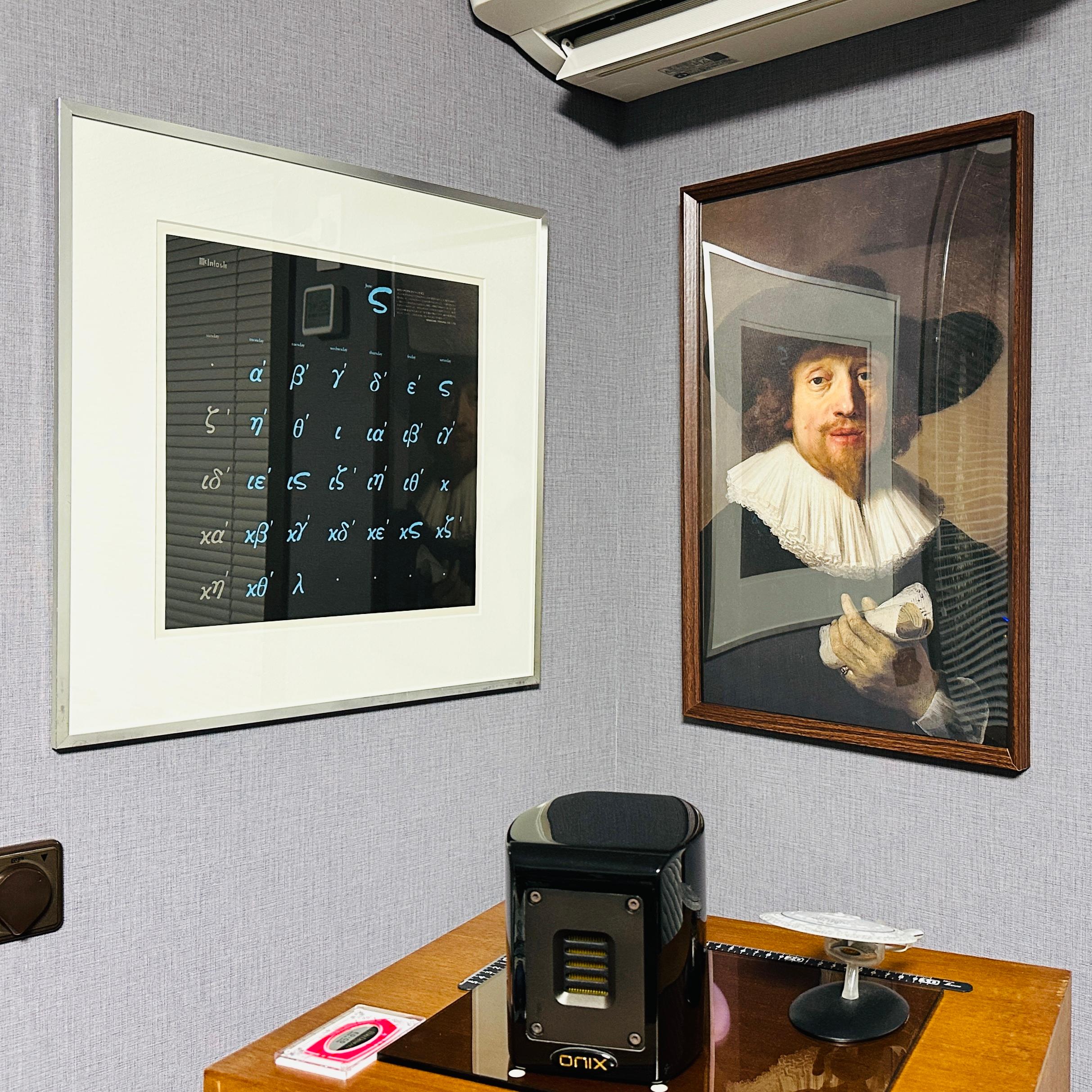 ギリシャ文字の額装カレンダーはガラスですが2mmのアクリル負けてません。