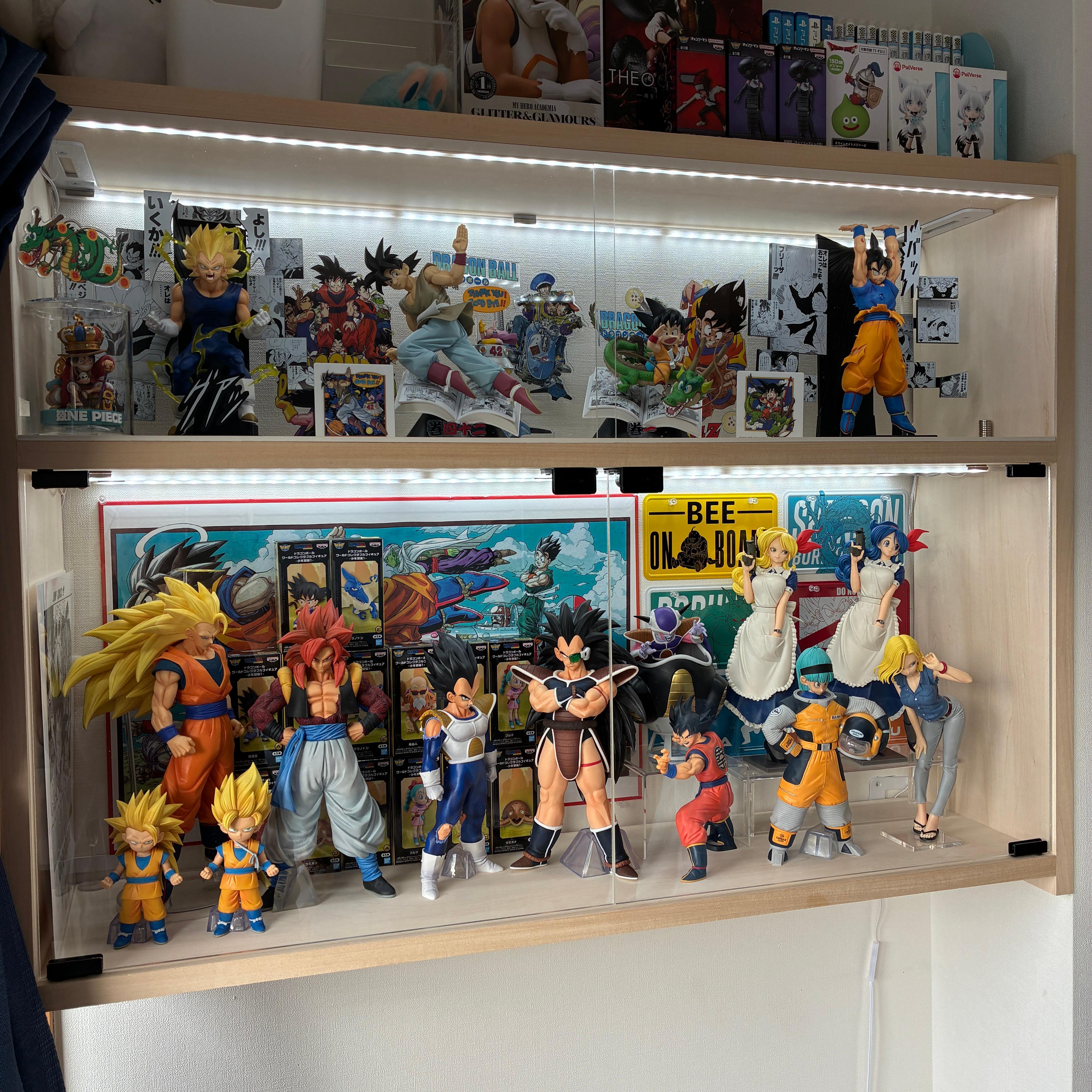 無印良品のユニットシェルフにアクリル板をくっ付けてフィギュア棚にしました。