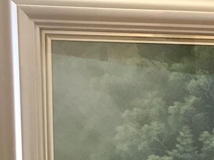本題ですね1枚目の隣りの額が歪んで写り込んでいますが2枚目は正方形に写り込んでいます。