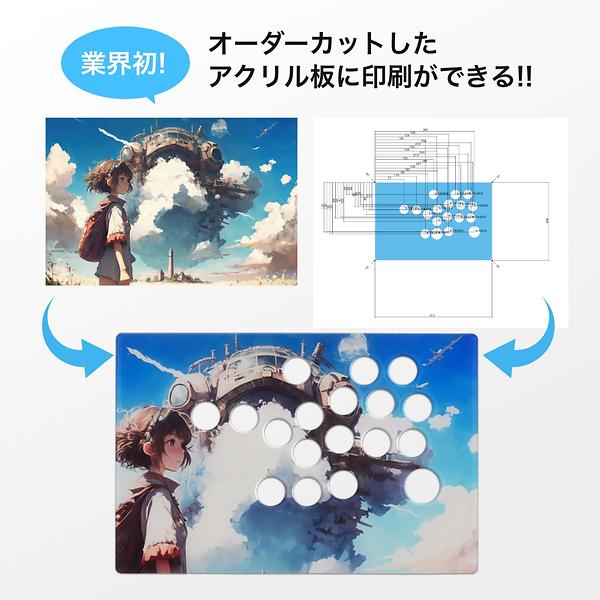 - お好きな形状にオーダーカットしたアクリル板(押出)にUVインクジェットプリンターで印刷サービスをいたします。